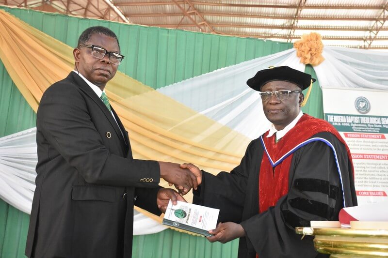 The President of the Seminary, Rev. Prof. S. Ola Ayankeye recognised dignitaries present – both those already mentioned and others. Royalty from different parts of Yorubaland were among those who graced the occasion. Prominent among them were the king from the inaugural lecturer’s home town – Oba Rasheed Oyinloye Olagbenro, the Oloje of Oje Owode in Oke Ogun area. Oba Musliudeen Ademola Oladele, the Ajoriwin of Irawo, and Oba Jolade Idowu Job, the Iba of Agbonle were also present. Oba Gbolagunte Olaosebikan, the Onifedegbo of Fedegboland a king who has been a good neighbor of the Seminary was also present. The Onpetu of Ijeru was acknowledged in absentia, and other leaders who had been of inspiration and blessing to the inaugural lecturer. Some unforgettable people were recognized by the lecturer of the day post humously like Rev. Dr S. Ola Fadeji, as well as the parents and the parent-in-law of the inaugural lecturer.